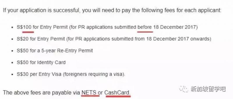 关于申请费用,现在只要线上申请都要先交100新币,申请通过之后,就要为Entry Permit 交20新币(2017年12月18日前申请要交100新币,有没有觉得现在很划算),然后Re-Entry Permit50新币,PR准证50新币,Entry Visa30新币。这些费用都可以在领取PR准证那天,通过刷卡来交。