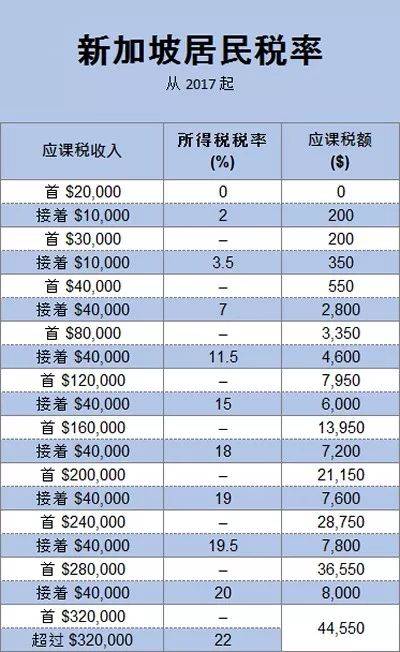 新加坡的累进税率从0%开始,S$320,000以上最高是22%。