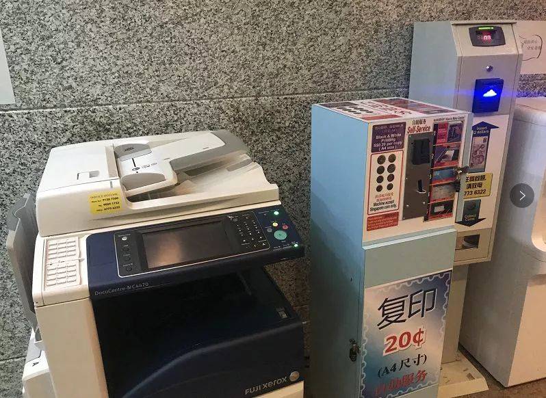 复印机是自助的,投币20分复印一张,没有硬币的话,边上有纸钞兑换机,好像只接收2元面值的。大家提前准备好硬币或纸币哦。