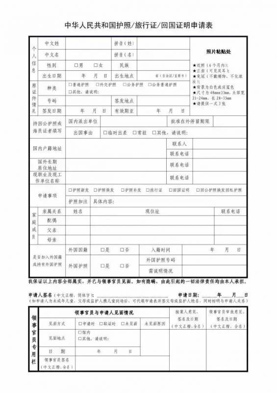 完成后生成预约号和《中华人民共和国护照/旅行证/回国证明申请表》,需自行打印带去大使馆办理。