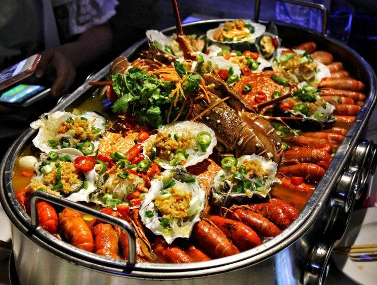 烧烤三文鱼头、油焖大虾……