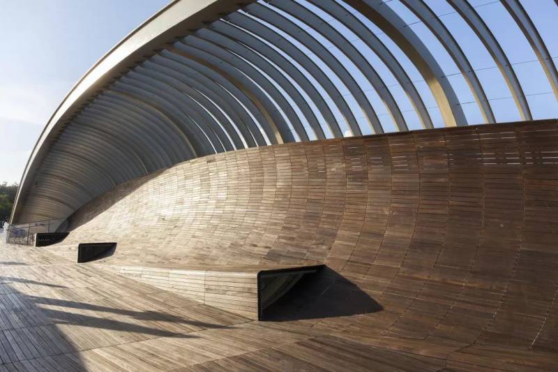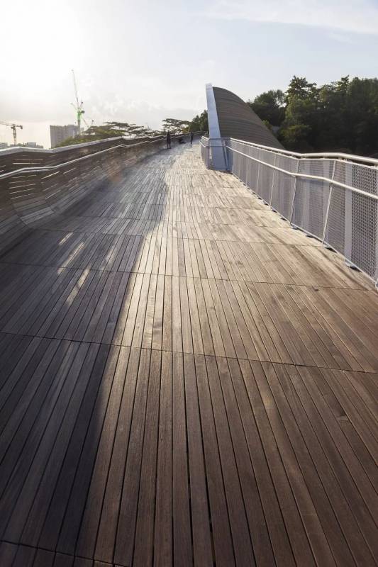 新加坡最高的人行天桥,由木板做成的,造型堪称妖娆。整个桥身犹如起伏的波浪,设计感很强。