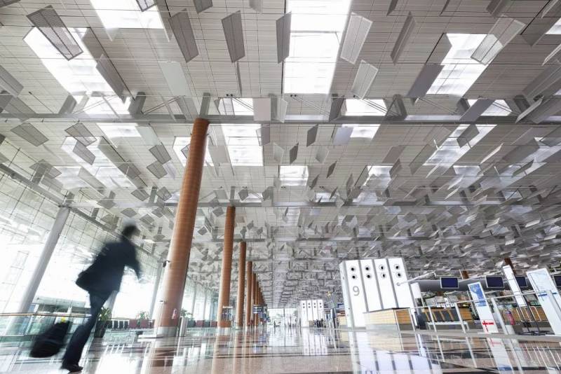 樟宜机场目前开放了3个航站楼,三座航站楼之间可以乘坐sky train轨道交通方便的穿梭。这是其中的T3航站楼,现代感十足的设计,天花板上的金属叶片随着日照不同可以调节角度,最大限度的利用日光,环保又节能。
