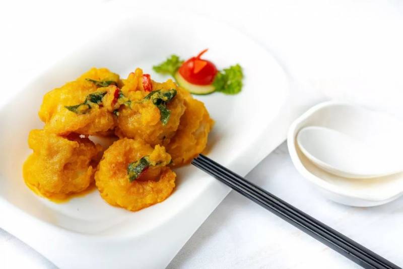 美味与质地的融合令人无法抗拒,顿时明白为什么咸蛋与鲜虾是天生一对。