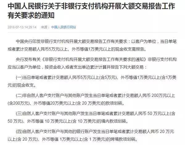 当日5万以上交易要上报央行