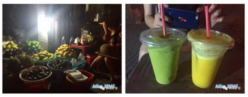 这小水果摊不看不知道,一看吓一跳啊!怎么说呢,榴梿我没吃,但是果汁巨好喝!这家水果店连个招牌都没,夫妻俩的店,门口摆了一堆水果,在indochine酒店旁边,白天不开,晚上开。