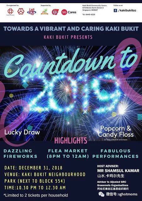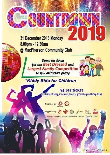 如果你懒得加入市区的活动,请检查附近的RC或社区俱乐部,了解你附近的倒计时派对。随着数量众多的社区倒计时派对将于12月31日举行,期待为家人带来一个不间断的欢乐之夜!
