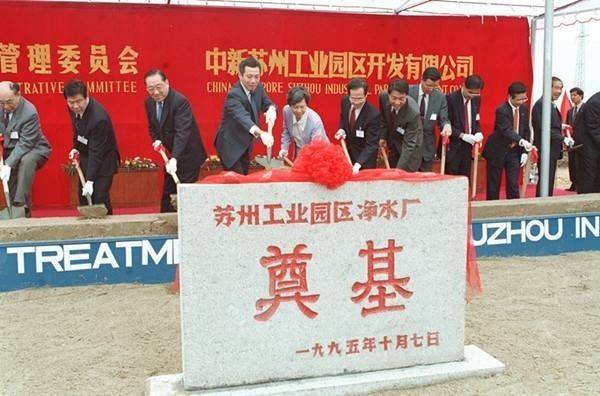 1995年苏州工业园净水厂奠基仪式,左三为李岚清,左四为李显龙