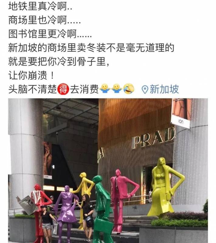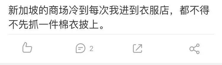 “ 作为一个北方人,在新加坡淋了点雨上了公交车,手里拿着冰牛奶的我人生第一次感到真的要冻死了 ,到了商场果断出手买了一个围脖和一个羊毛披肩才勉强御寒。