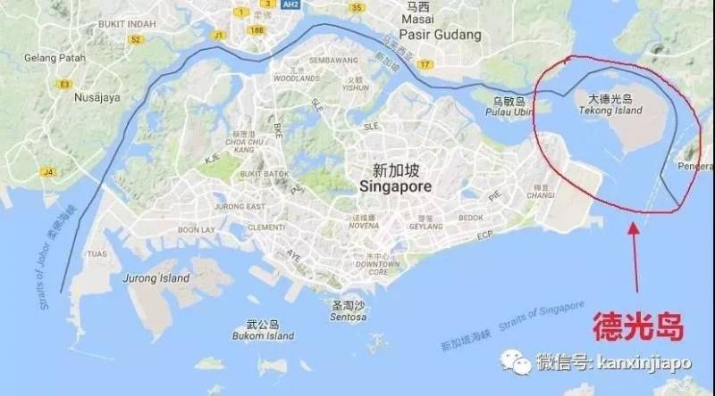 黑线为新马分界线,新马之间最大的领土争议在填海扩张的德光岛上