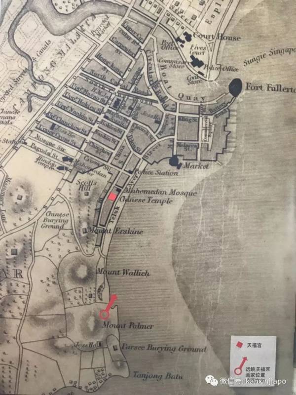 就拿供奉海神妈祖的天福宫来说,它建于1840年,英殖民地政府1843年出版的新加坡市区地图显示,天福宫就在海边: