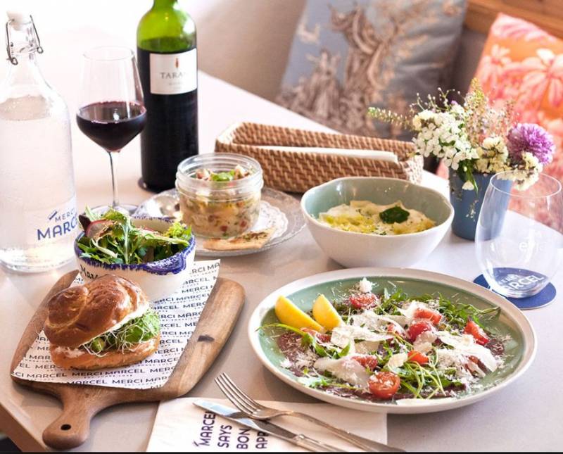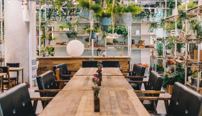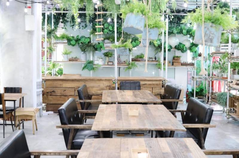各种三明治、沙拉、咖啡 在被绿植包围下尽情享受