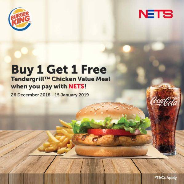 Burger King 汉堡王购买Tendergrill™ Chicken套餐,使用NETS卡支付,即可享有买一送一!