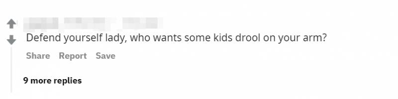 有网友表示理解黑衣阿姨,毕竟谁想让小孩子在自己手臂上流口水呢?