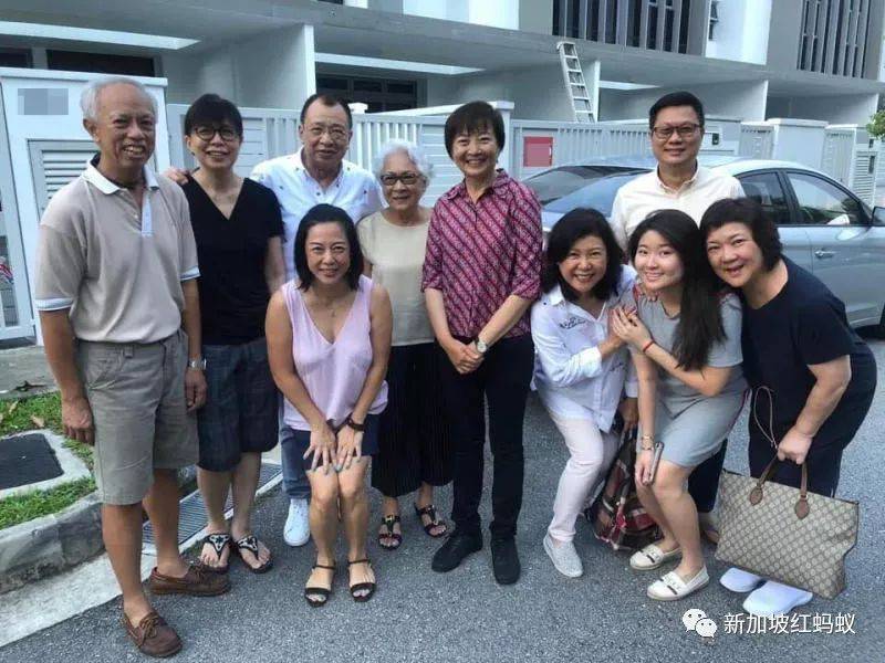 香港资深男演员许绍雄(后排左三)和家人定居狮城,与义顺集选区议员李美花及其他居民合照。(取自面簿)