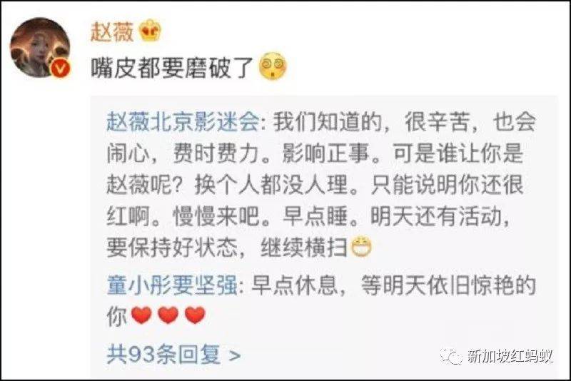 赵薇本人也发了三个心形表情表示力挺,还无奈回应:再解释嘴皮都要磨破了。