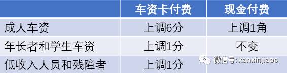 12月29日开始,用车资卡付费的成人,每趟车程需多支付$0.06,以现金付费的,单程车资上调$0.1。