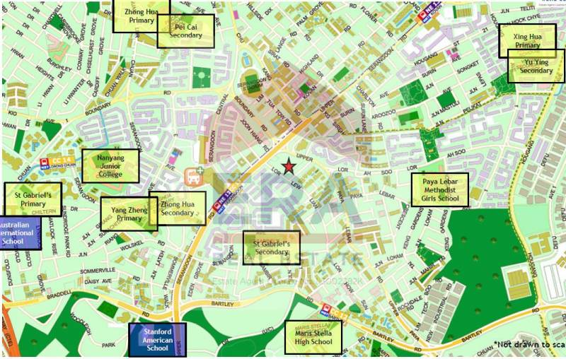 众多名校围绕,是名副其实的学区房,本地知名学校如巴耶利峇美以美女子小学,养正小学,新加坡海星小学/中学,中华中学,巴耶利峇卫理小学/中学,圣加布里埃尔中学,大专学府南洋理工学院(NYP)等皆在几公里范围内,国际学校如史坦福美国国际学校、澳大利亚国际学校,博伟学校只需一站地铁。