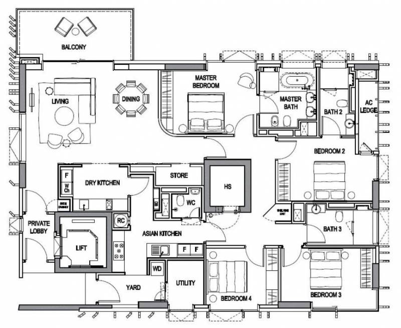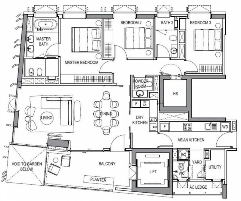 3房豪华型,面积为165-173平方米,每个卧室都很大,主卧带浴缸,带大阳台,厨房分为干湿两区,私人电梯直接入户,价格650万新币起