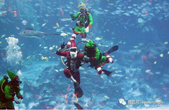 在S.E.A.海洋馆,圣诞老人“亲自”来到水下与游客们共同庆祝圣诞~