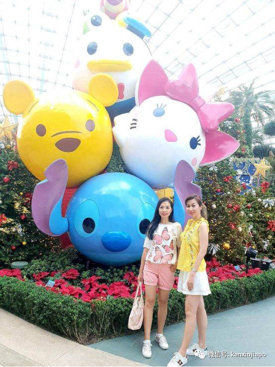 美女们驻足拍照,留下今年圣诞节期间滨海湾花园的美景。