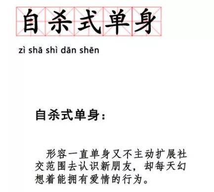 如果你还不理解这个词是什么意思,万事通先来给大家科普一下:自杀式单身,就是指憧憬爱情,却又不主动扩展社交圈,认识新朋友的行为。这戳中了多少单身狗的心......