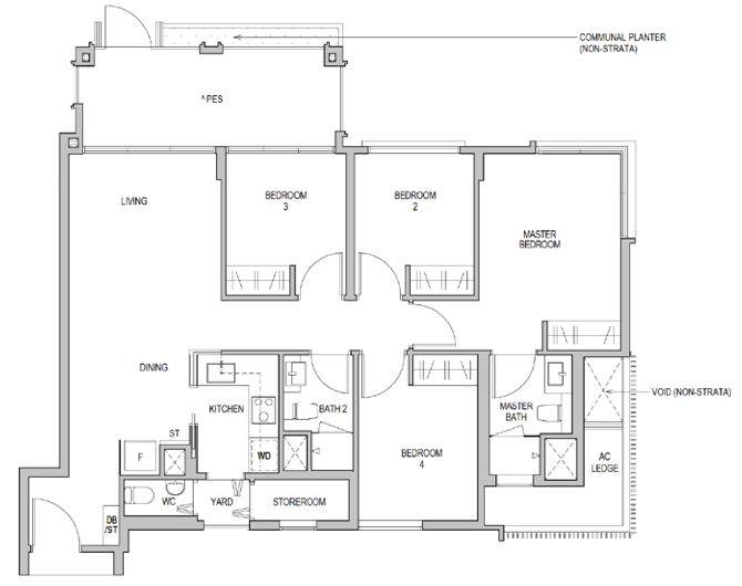 Mayfair Gardens公寓的四卧室平面结构图