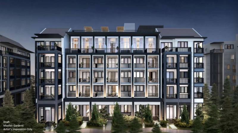 Mayfair Gardens将建造4栋5层楼高住宅,合215个私宅单位,户型包括89个一卧室、86个两卧室、26个三卧室、8个四卧室和6个阁楼单元,面积介于495-1,733平方尺(46-161平方米)。