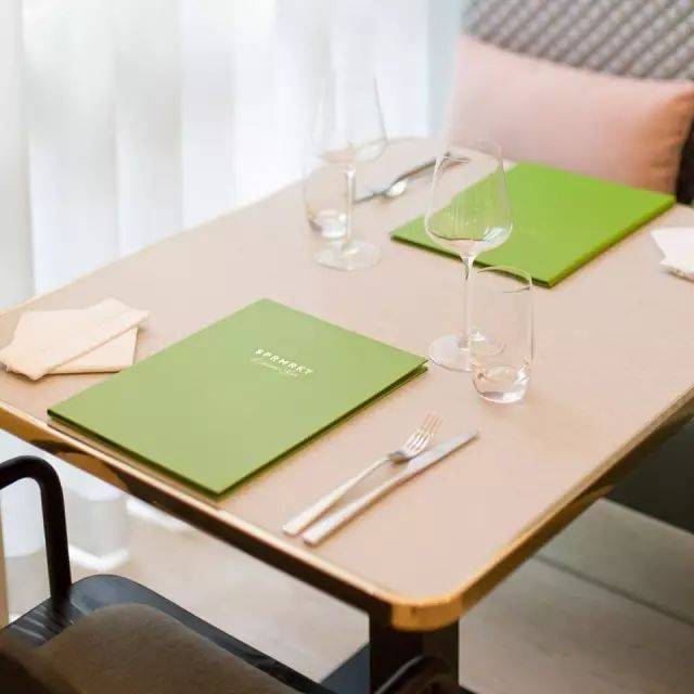粉绿色的菜单配白色的百叶窗
