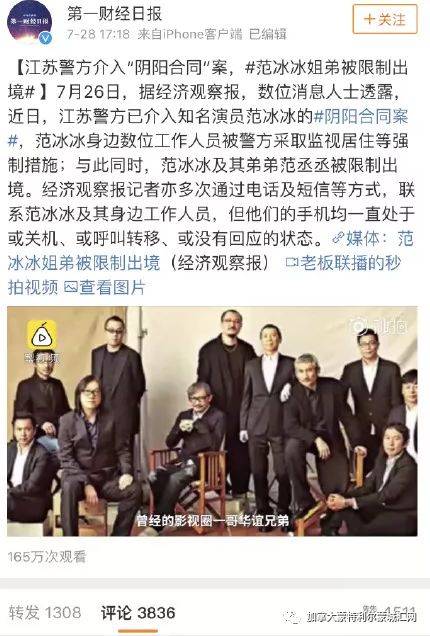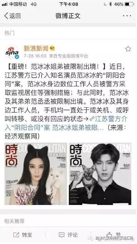 今年7月份,有一档综艺节目要到境外录制,邀请了范冰冰的弟弟范丞丞,事到临头才发现他已无法出境,一查后才知他和姐姐都已经被“边控”,即限制出境。