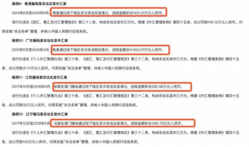此次被通报的7名个人,有4人因为用地下钱庄非法买卖外汇被罚,有3人因分拆逃汇被罚。