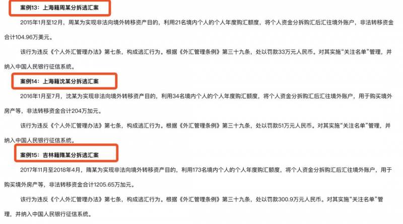 分拆逃汇的3人都是要非法向境外转移资产,他们利用其他人的个人年度购汇额度,将个人资金分拆购汇后汇往境外账户。