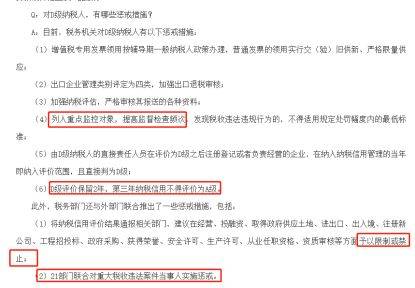 而对于D级信用评级的人,税务局是这样处理的: