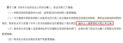 对于此类纳税人,税务机关将通知出入境管理机关,阻止其出境。