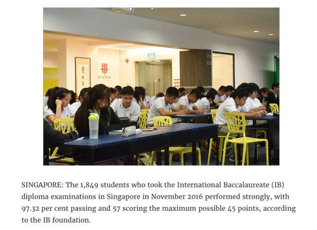 在过去6年的IB考试成绩中,新加坡亚太地区排名一直第一!就2016年IB成绩来看,新加坡IB课程考生及格率占97.32%,而全球平均及格率只有70%。