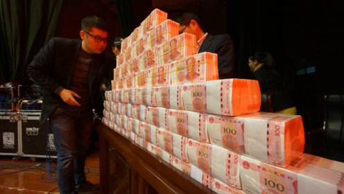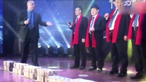 公司年会百万现金垒“钱墙” 700位员工父母排队领红包