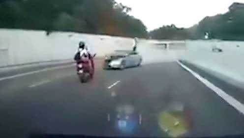 惊险!新加坡2人骑摩托车被撞飞后奇迹生还