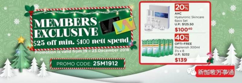 屈臣氏会员们也有专属折扣哦!消费满100新元就能有25新元的折扣~别忘记折扣码:25M1912
