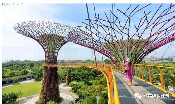 这个公园中最让人印象深刻的要素是一些高25米---50米的“擎天大树”(Supertrees),上面成长著垂直花园,攀缘植物,附生植物还有蕨类植物成长在上面。