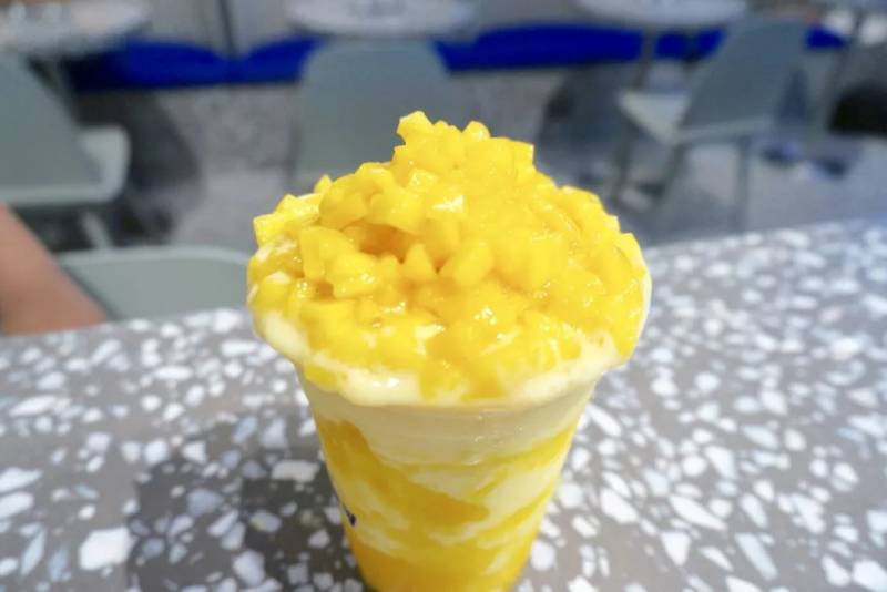 鲜榨芒果冰沙打底