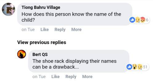 这名男子是如何知道女童的名字的? 另外一名网友回答,鞋架上标记有孩子们的名字,这是个严重的缺陷!