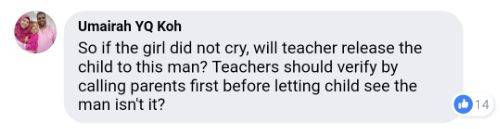 如果女孩没有哭的话,难道老师就这样让她被陌生人带走吗? 老师应该在让小孩见这个男子之前,先确认这名男子的身份,不是吗?