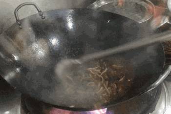 一会儿就能听到锅里热油噼里啪啦的热油声