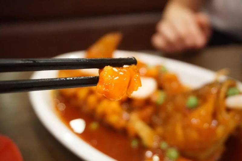 一刀一刀将鱼肉翻起,处理好小刺,而后将黄鱼炸得皮酥肉嫩,淋上酸酸甜甜的芡汁,最后以虾仁、青豆来点缀,好看又好吃。
