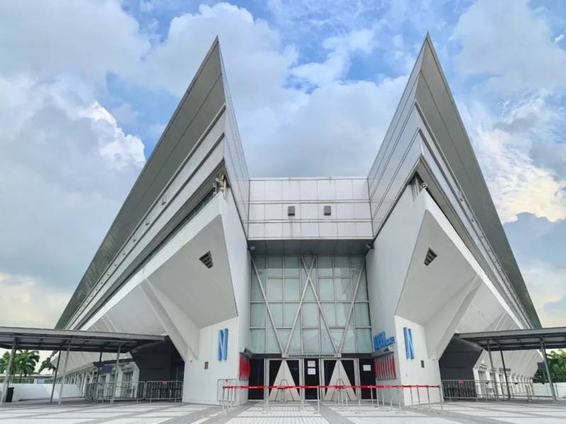 从商场其中一个门口出来,对面就是新加坡室内体育馆。这个体育馆建于1989年,随着体育城的建立这里也进行了翻新,其外形为锥形,内部为无柱结构。