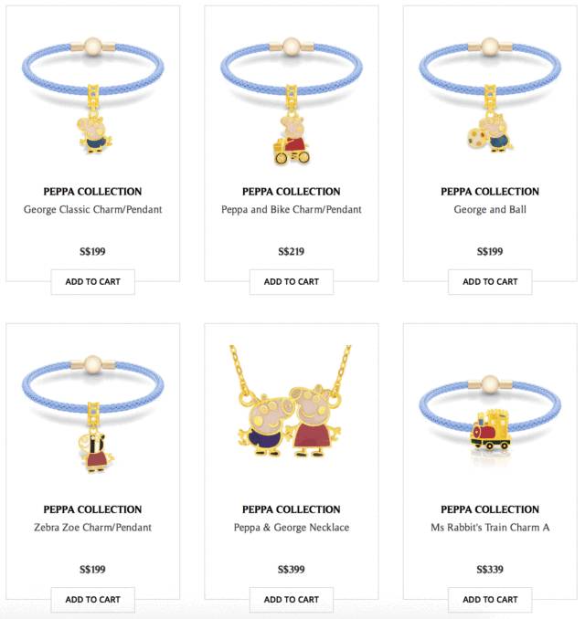 这些珠宝来自新加坡本地品牌MoneyMax Jewellery,他们是新加坡首个,也是目前唯一一个引进小猪佩奇(Peppa Pig)商标的珠宝品牌!