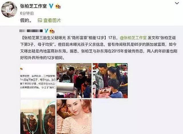 先前曾有传言,孩子爸是年约60岁的新加坡富商,又传是曾经跟张柏芝传过绯闻,大她12岁的中国隐形富豪孙东海。