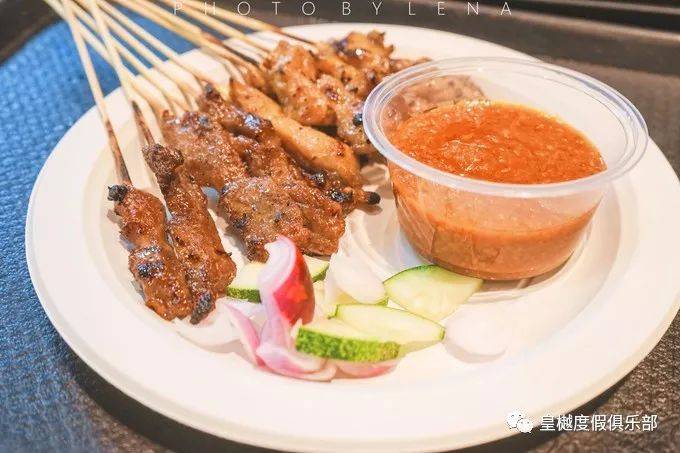 沙爹虽然模样跟常见的烤肉串差别不大,但其做法和味道大有不同。炭烤前腌制过的肉丁非常入味,蘸上由花生酱、椰浆、幼虾特调的沙爹酱,最后搭配黄瓜、洋葱等配菜或者马来饭团等主食。地道的沙爹不在高档餐厅里,而在大街小巷的路边摊位或热火朝天的熟食中心,每串0.5-0.7新元(约2.4-3.4元),10串起售。