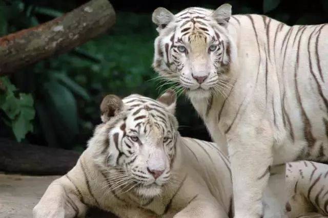 白老虎,是孟加拉虎的一种变种。由于基因突变,导致孟加拉虎原本橙黄色底黑色条纹的毛发转变成白底黑纹。