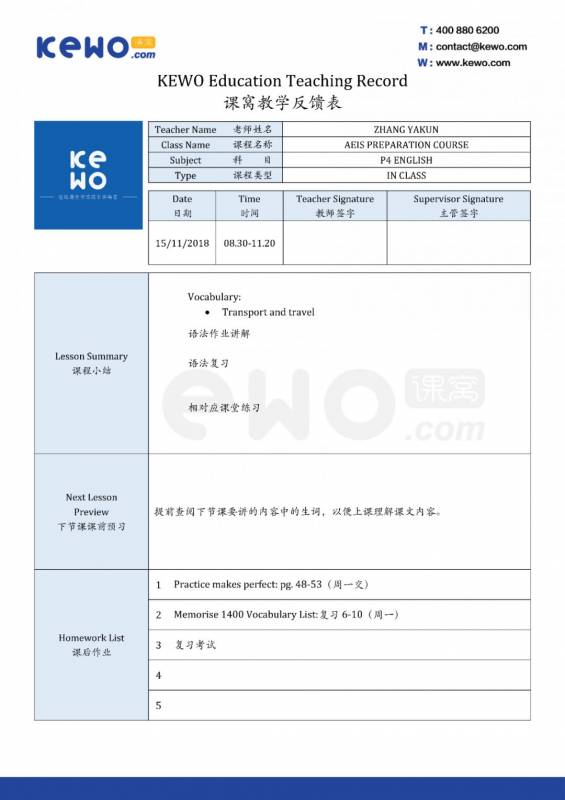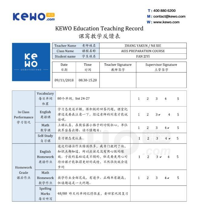 很多AEIS考试培训,是进行教学了,也进行答疑了,但是就是没有进行反馈,学生不知道自己学了什么,家长也不知道孩子的学习状态!但是有了反馈表,学生、家长都能够对自己的学习进度、学习状态了若指掌!